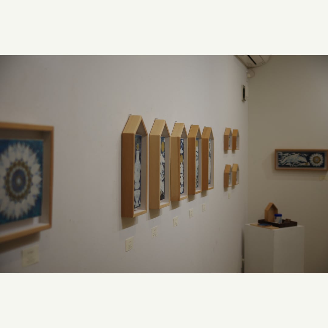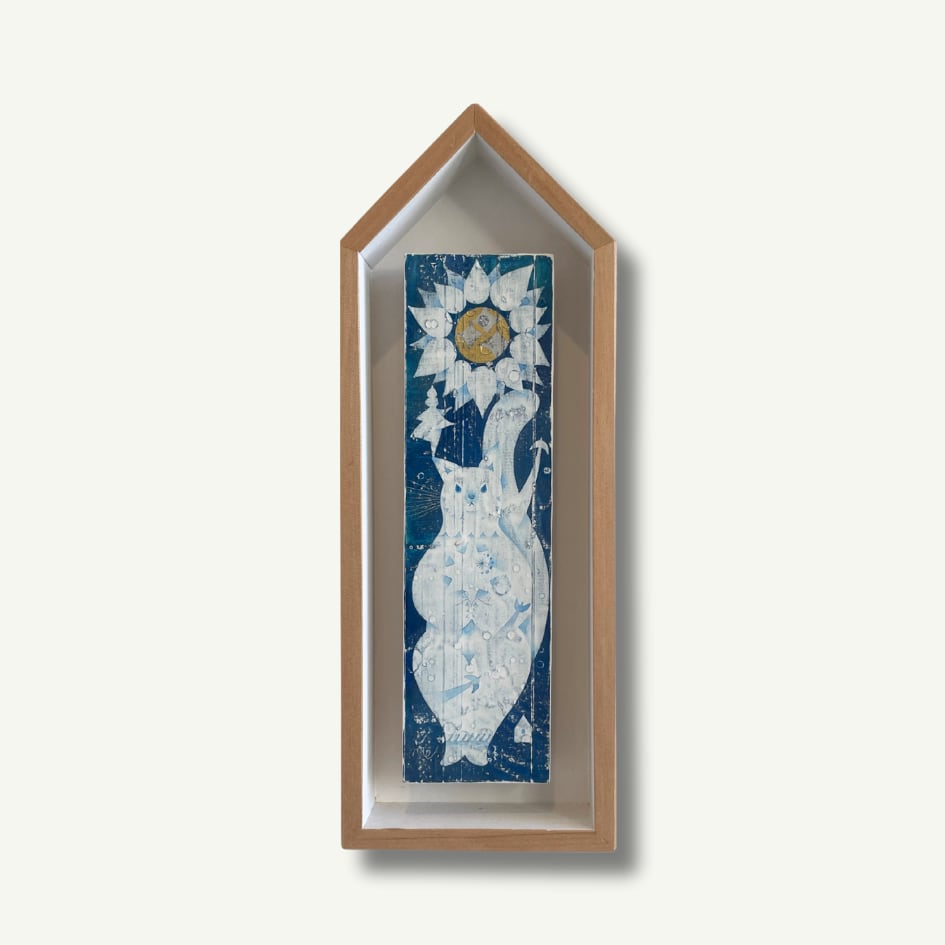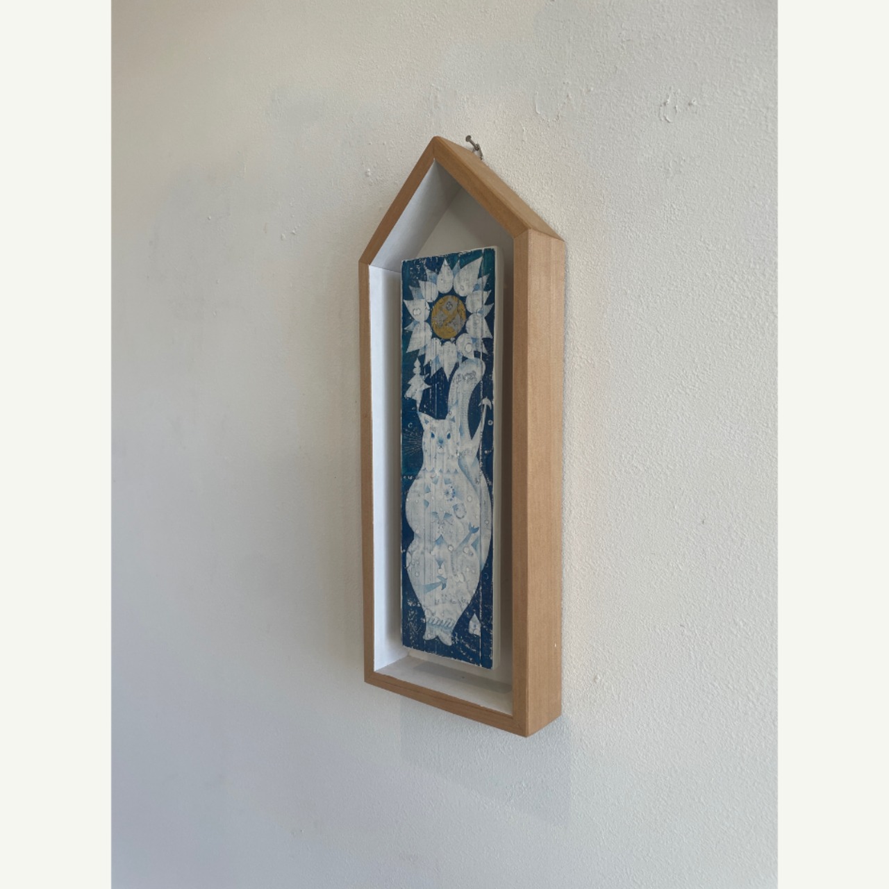 青い作品を中心に、お地蔵さんのような”やさしさ”や”祈り”を感じられるような作品を作りたいと思い制作しています。