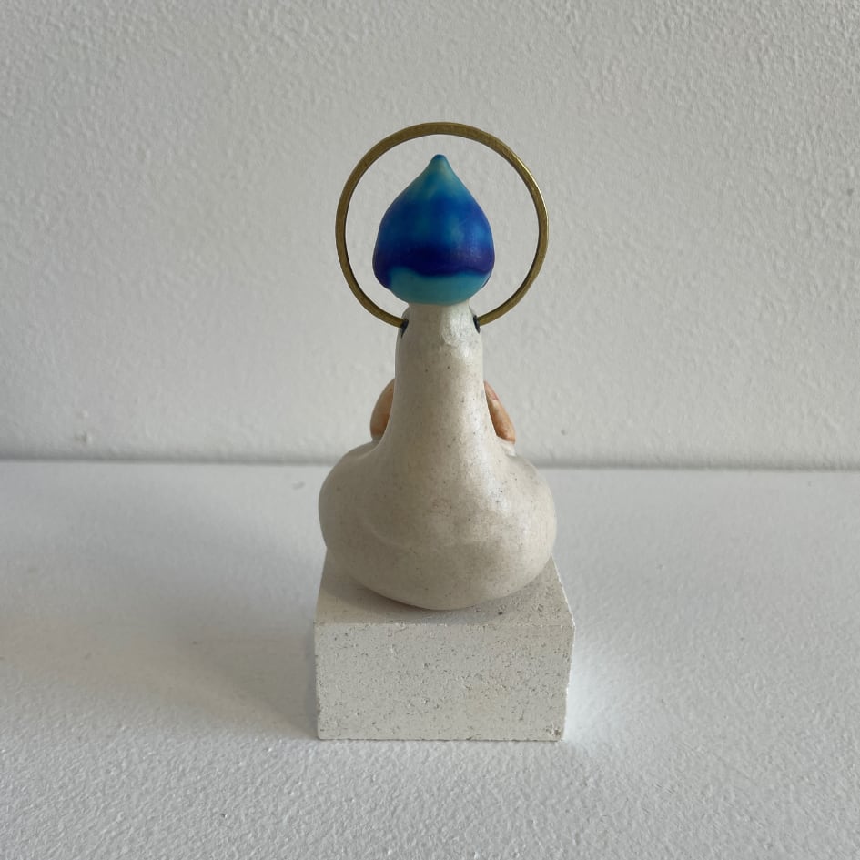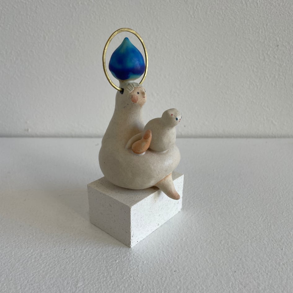 青い作品を中心に、お地蔵さんのような”やさしさ”や”祈り”を感じられるような作品を作りたいと思い制作しています。