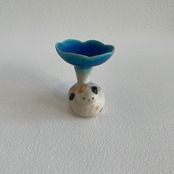 青い作品を中心に、お地蔵さんのような”やさしさ”や”祈り”を感じられるような作品を作りたいと思い制作しています。