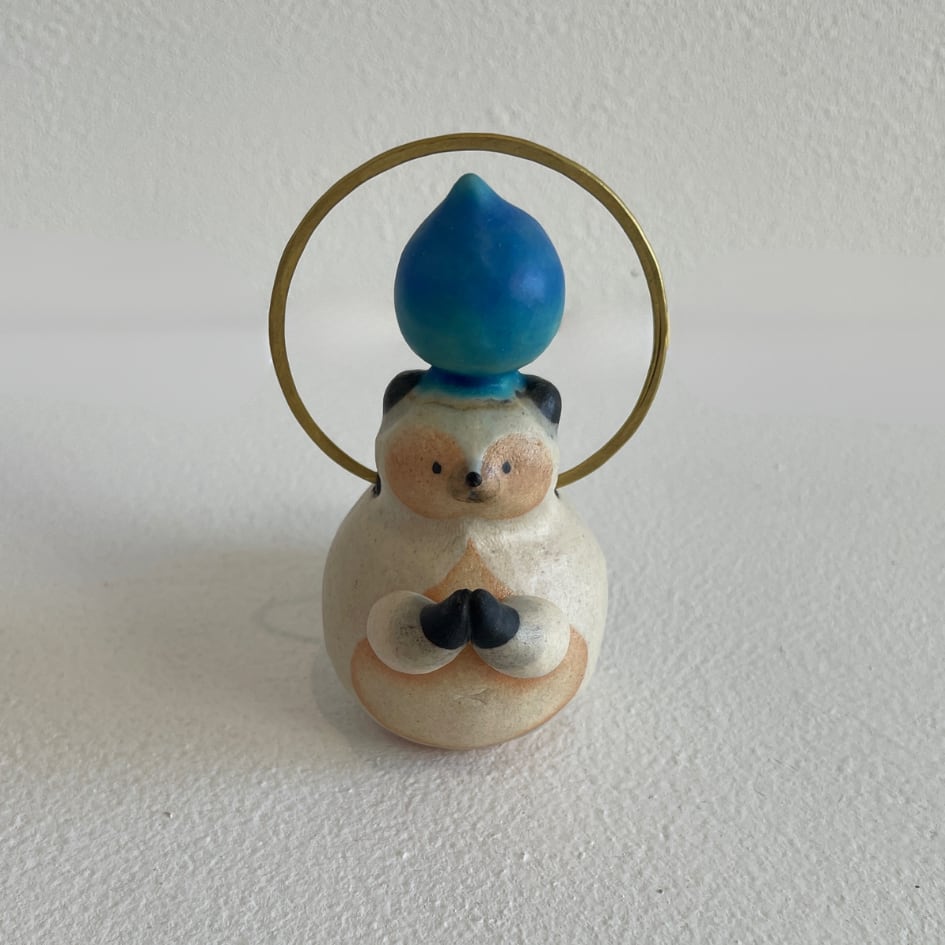青い作品を中心に、お地蔵さんのような”やさしさ”や”祈り”を感じられるような作品を作りたいと思い制作しています。