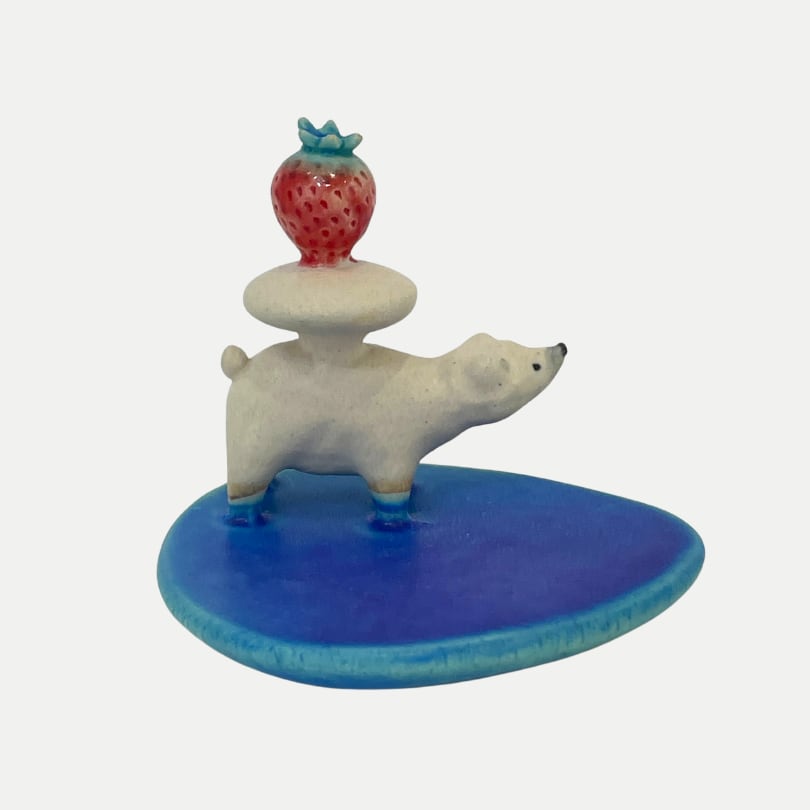 青い作品を中心に、お地蔵さんのような”やさしさ”や”祈り”を感じられるような作品を作りたいと思い制作しています。