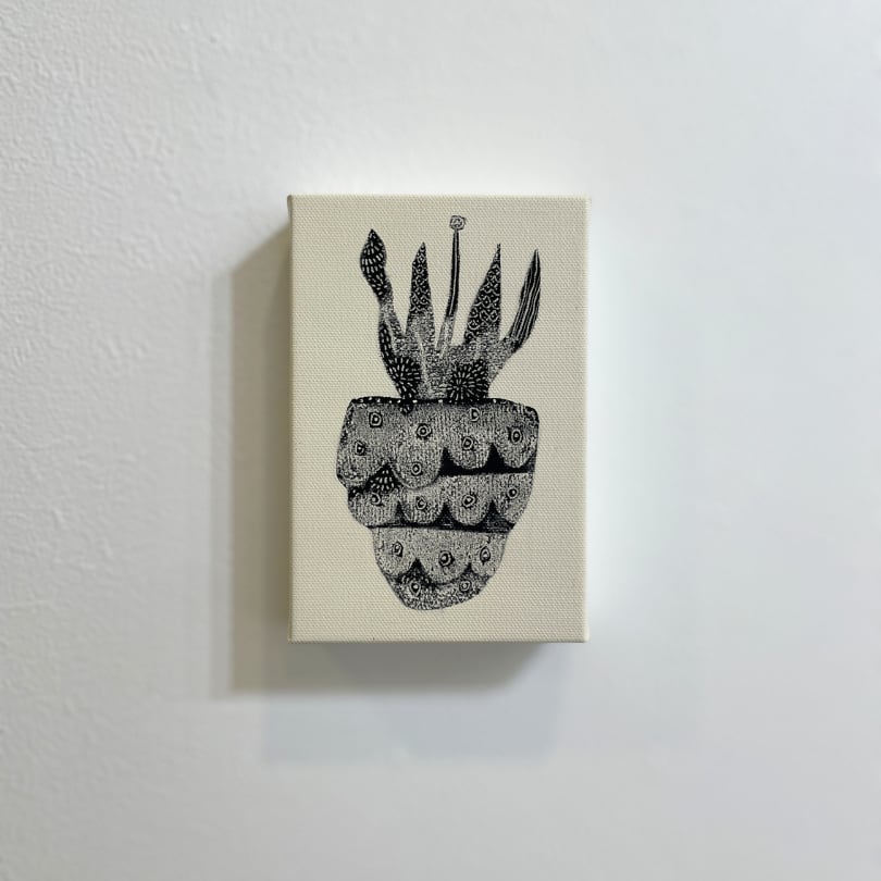 歪んだ弱々しい無数の線でチクチク描いたものたちは、どこか一箇所でも切れてしまうと簡単に崩壊してしまう危うさがある一方、集まることで強さを増し、その集合は美しい紋様を生み出すこともできます。